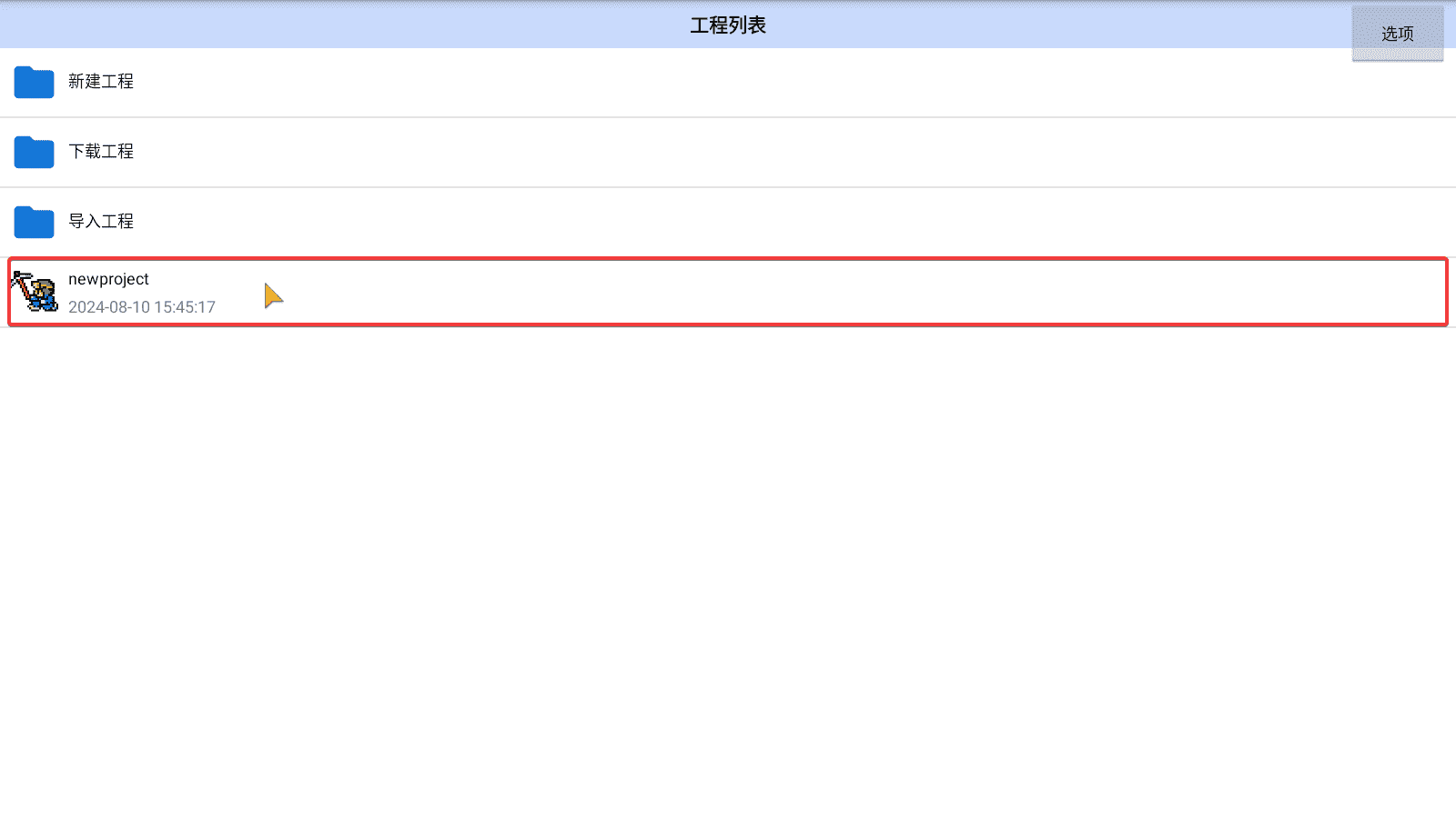 打开航梦编辑器之后我们进入刚才创建的工程