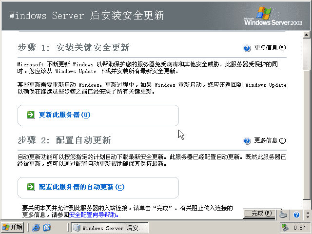 是让你安装更新的,但是现在这个没什么用,因为Windows Update早就被微软关闭了,所以说直接点击完成就好。
