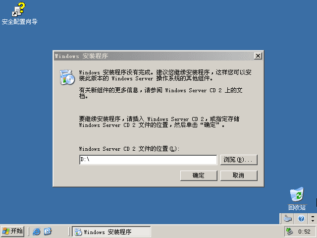 这时我们只需要点击右下角的光盘,将ISO镜像文件换成CD2(体积较小的那一个),然后点击虚拟机设置窗口的确定即可:
