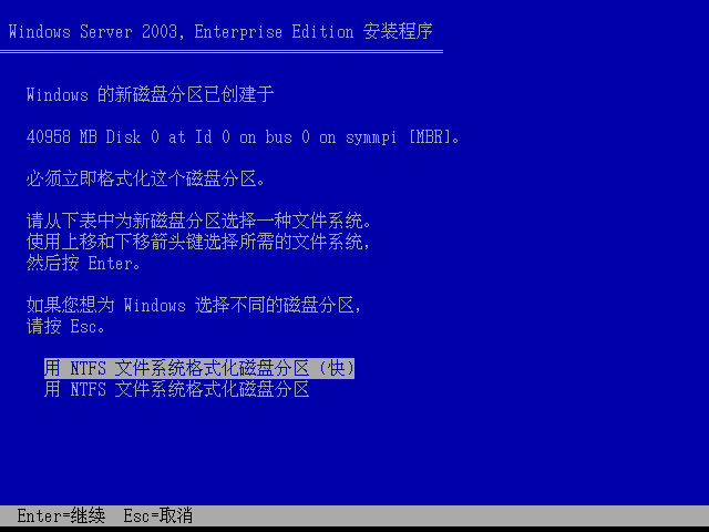 随后会让你格式化这个分区,我们选择哪个都可以,这里我选择快一点的方式,然后直接按Enter: