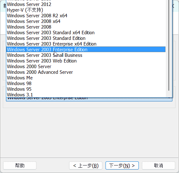 操作系统版本我们选择Windows Server 2003后面加上你镜像的版本就行,比如说你镜像版本是Enterprise,就选择Windows Server 2003 Enterprise Edition: