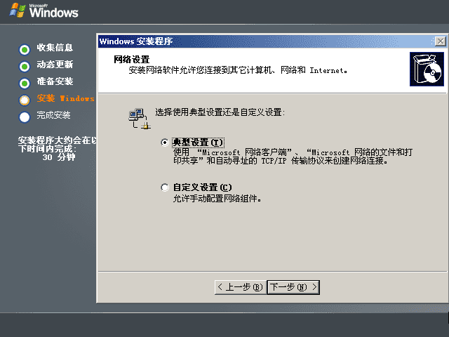 稍等一会,会进入到网络设置中,这个我们不用管,还是一路下一步: